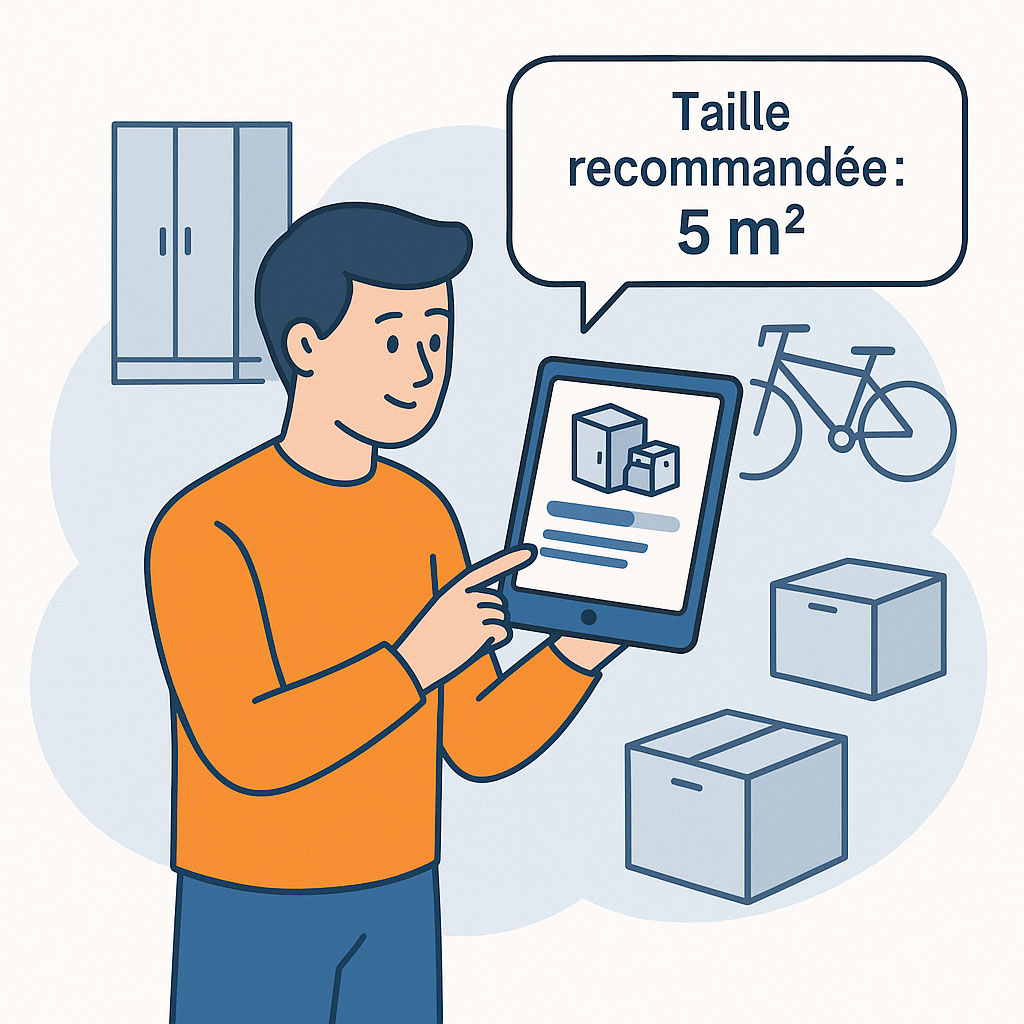 Nous estimons la taille du box dont vous avez besoin via notre simulateur ou parlez à un expert.
