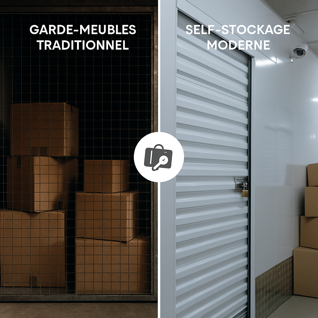 Le self-stockage vous offre un accès libre et flexible à votre espace, contrairement au garde-meubles traditionnel.